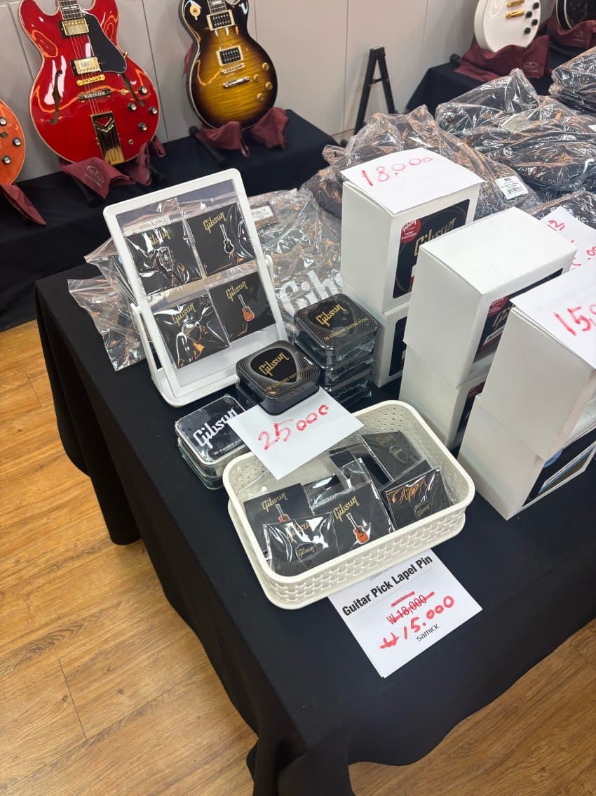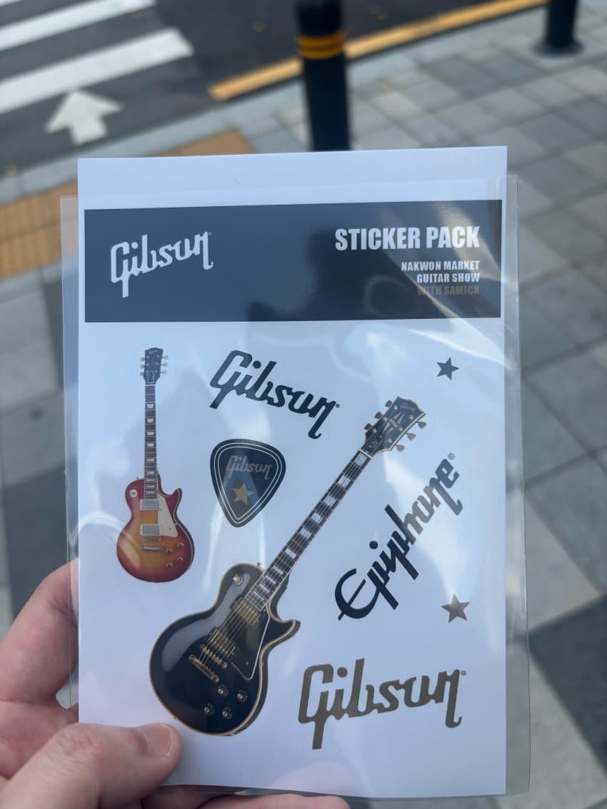 여러 깁슨 티셔츠 피크케이스 뱃지같은 굿즈도 있었는데 돈이 없어서 사은품인 스티커만 샀음
