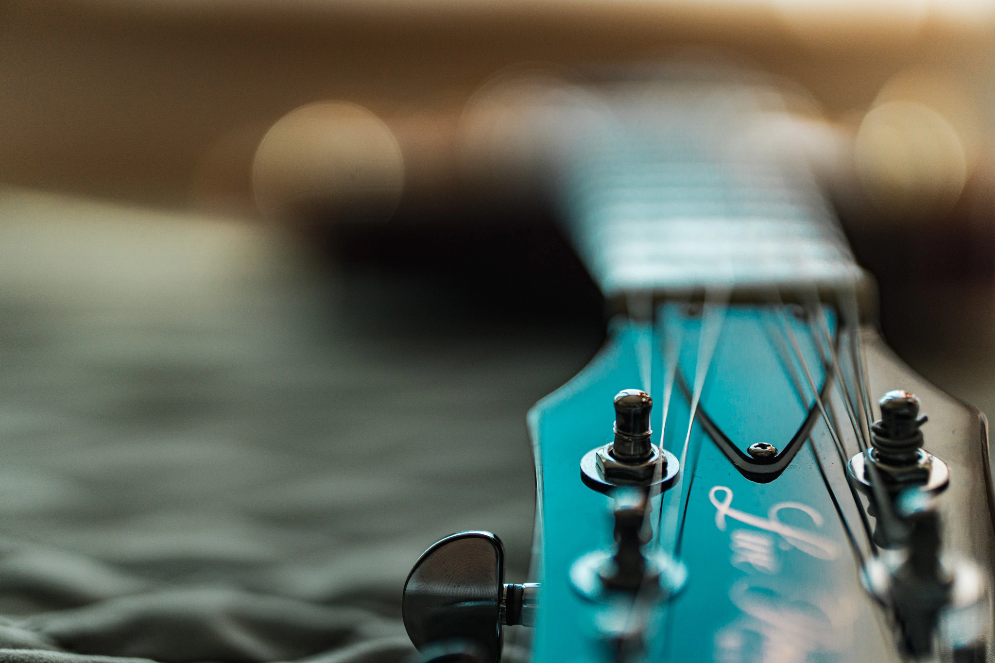 60년대 레스폴 컨셉 기반으로 그로버 스타일 헤드머신과 노랗게 익은 셀렉터 팁으로 완성.