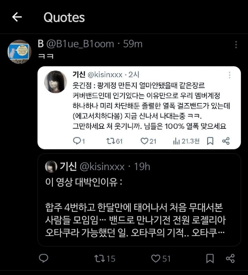 전에 뱅드림 성우 혐오도 했었다는데 그러면서 뱅드림 커버밴드 하는게 얼척없다는 글도 있었는데 지금 다시찾을라니까 안보임