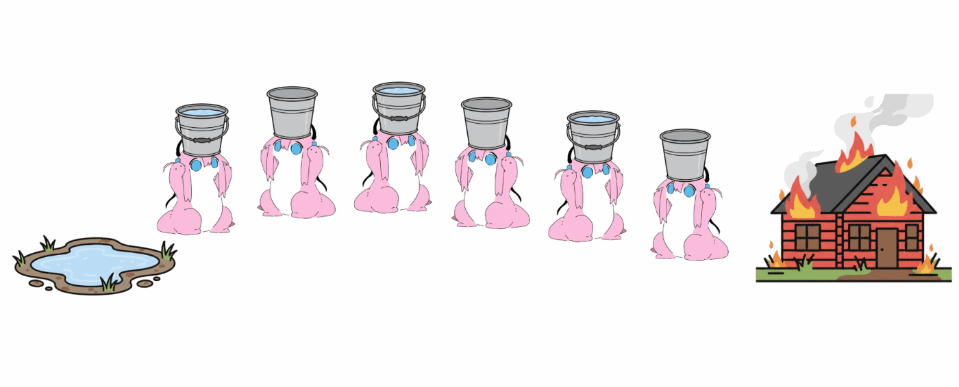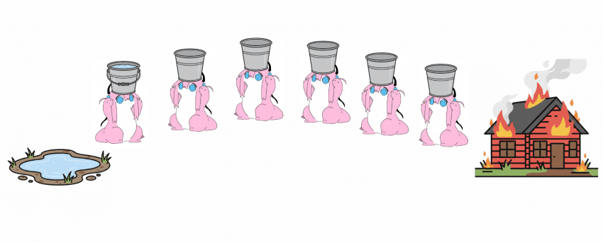 실제로 버킷 브리게이드(Bucket Brigade)라는 이름도 직역하면 "양동이 여단"이라는 뜻임