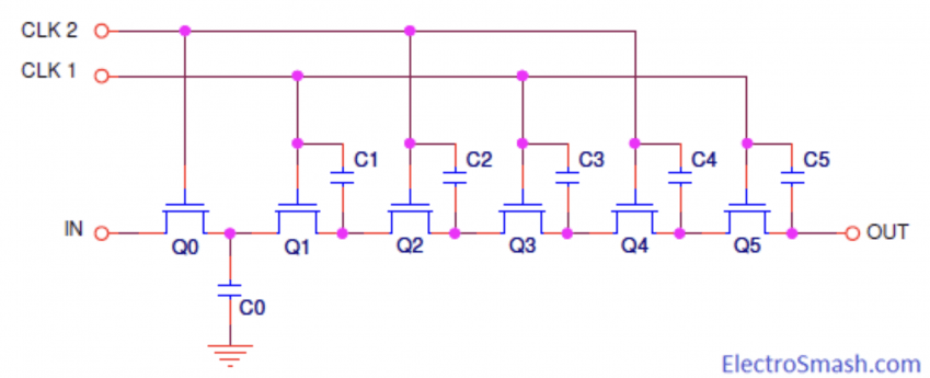 풀어서 설명하자면 어떠한 신호가 입력되었을 때 BBD 칩은 이 신호를 짧은 시간 저장, 혹은 지연해놨다가 훨씬 나중에 내보낸다는거
