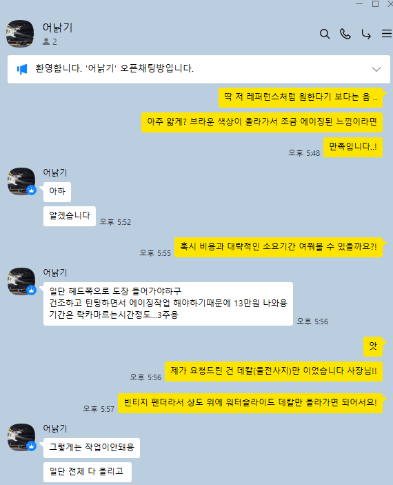 데칼 컬러 에이징 작업 가능하냐 문의햇엇음