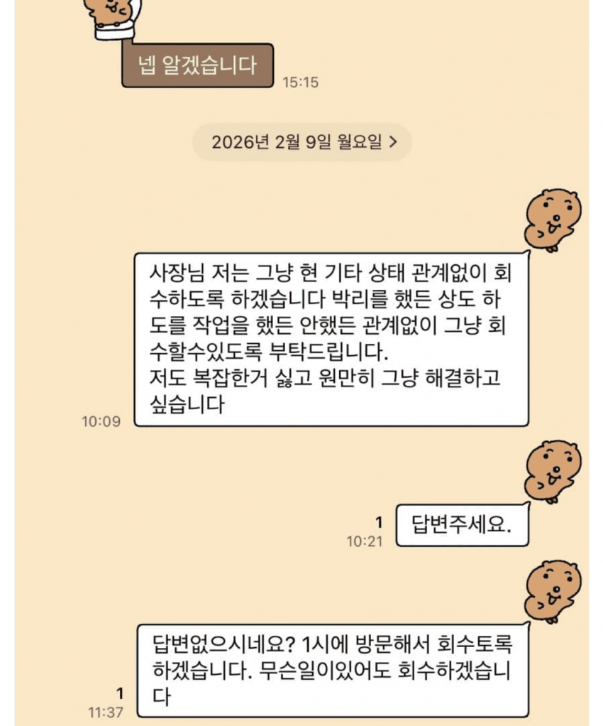 구매자는 회수한다는 의견 밝혔지만 읽씹