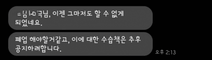 + 가게 앞까지 가서 문 열고 달라고 하여도 문 닫고 대응X