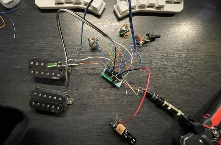 작은 기판을 써서 컨넥터블로 개조해서 배선 했고 탈거한 기본픽업도 다 컨넥터로 개조