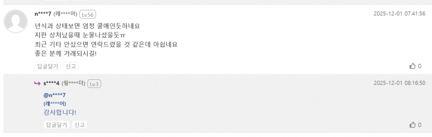 마지막에 좋은 분께 거래되시길! 멘트보면 거래되기전에 달린 멘트같고