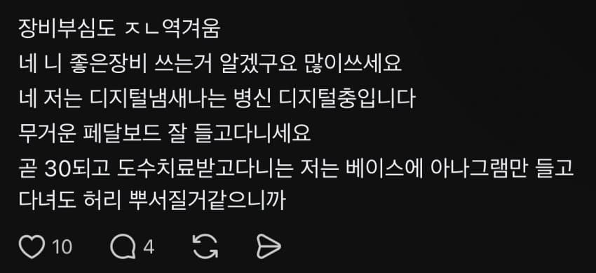 글에 열등감이 찌들었는데 저걸 굳이 표현하네