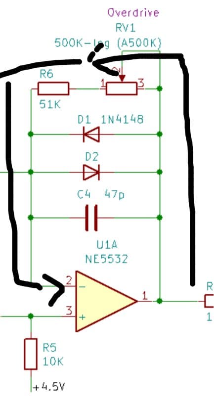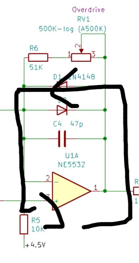 아무튼 위의 사진은 TS808의 회로도의 일부임.