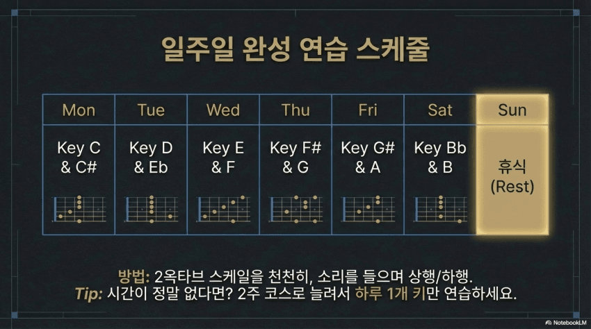 정확한 스케일이나 연주예제는 영상 참고하셈