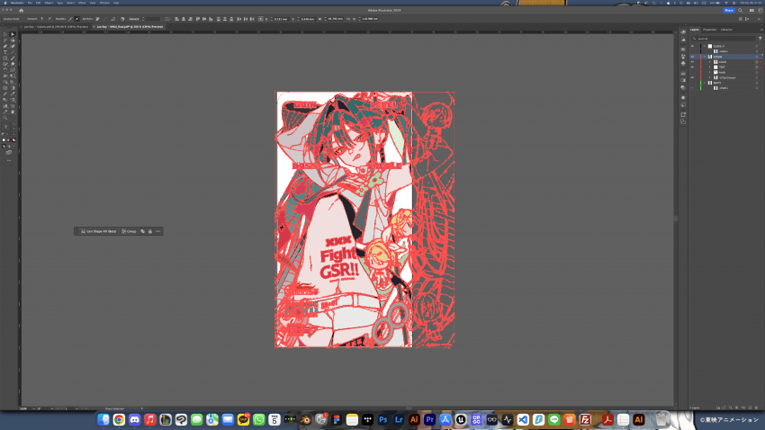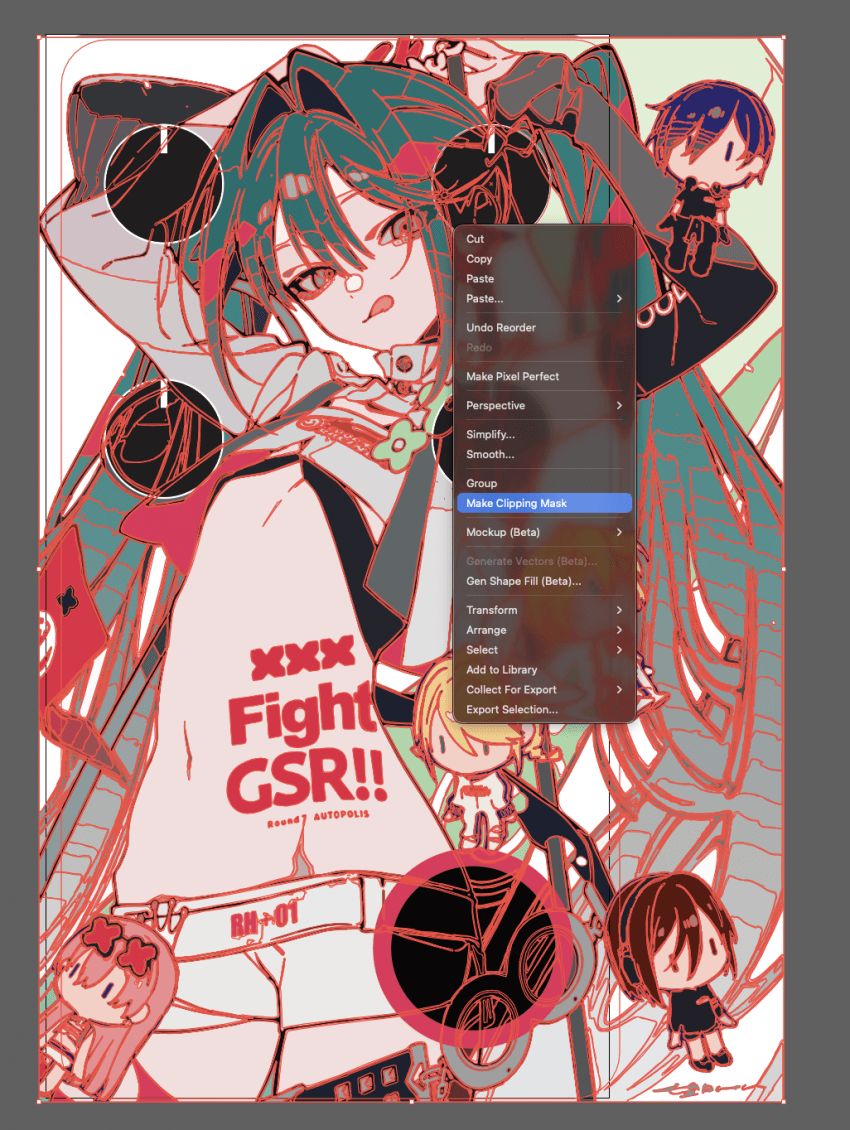 이 미쿠도 일러스트레이터 내에서 이미지트레이스를 사용해 모두 벡터화 되어있는 이미지임. 말이 어렵지 그냥 이미지 불러와서 이미지 트레이스로 딸깍하면 벡터화 시켜준다.