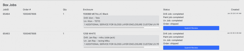 제출이 끝나면 이렇게 각각 드릴잡, 페인트, 배송등 작업 현황이 우측에 실시간으로 뜬다. 보통 주문 후 배송해서 받아볼 때 까지 1주~2주생각하면 됨. 나는 일주일만에 받아본 적 있음