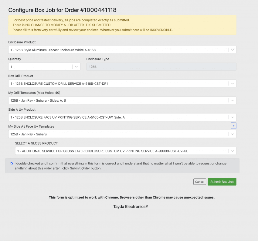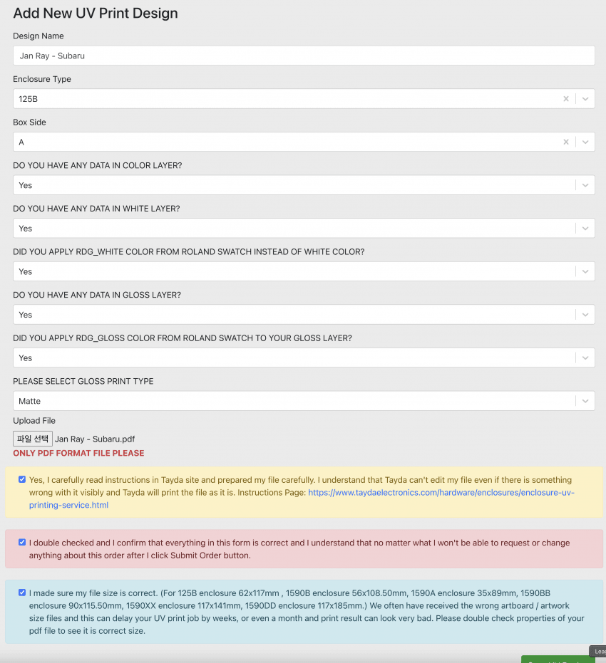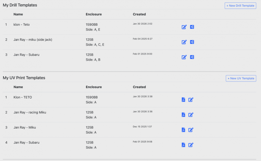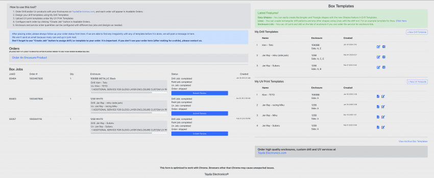 본인의 타이다 계정으로 주문을 하면 tayda box tool이라는 페이지에 본인이 주문한 목록이 생긴다.