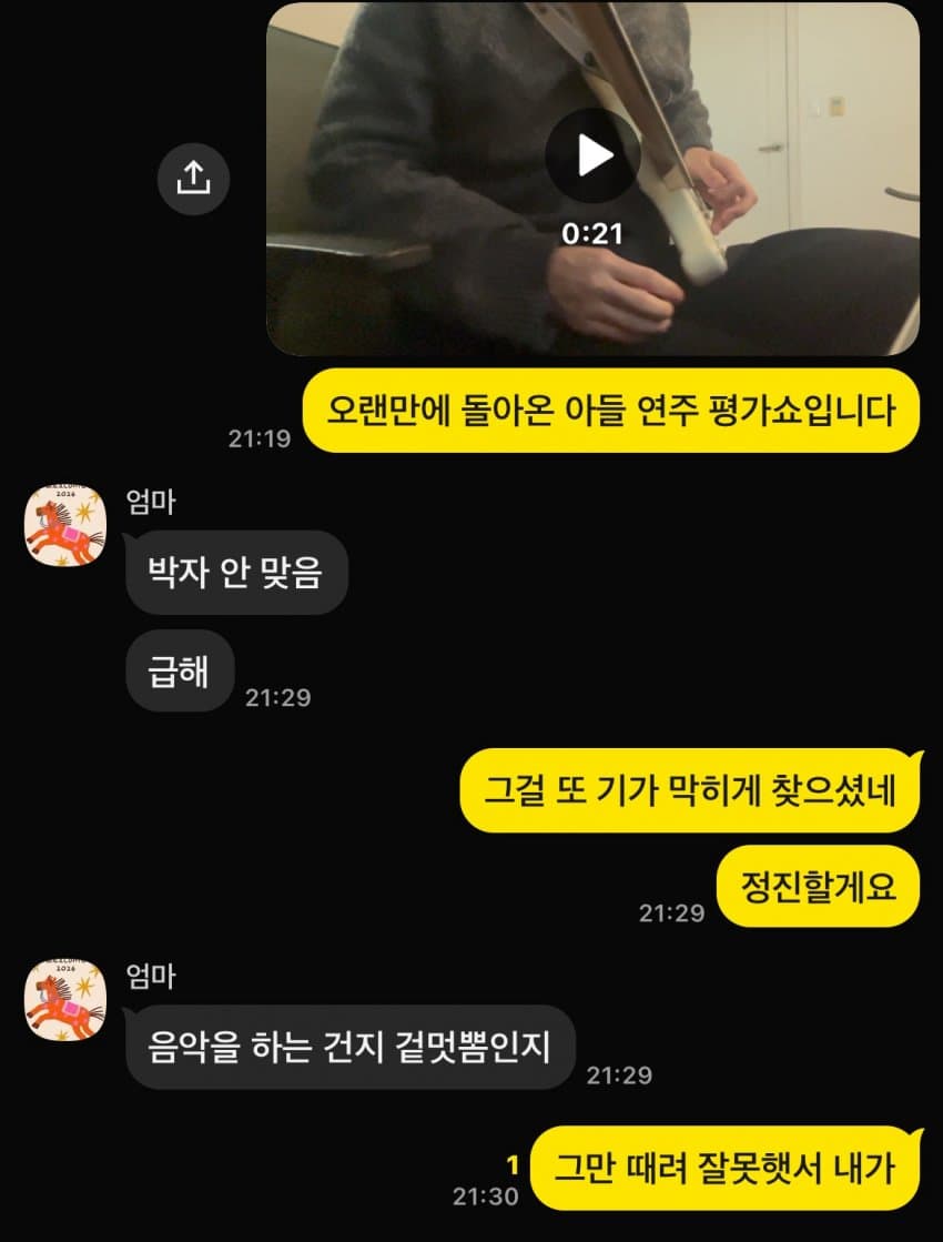 어머님 음악 하시면 개잘하실듯..